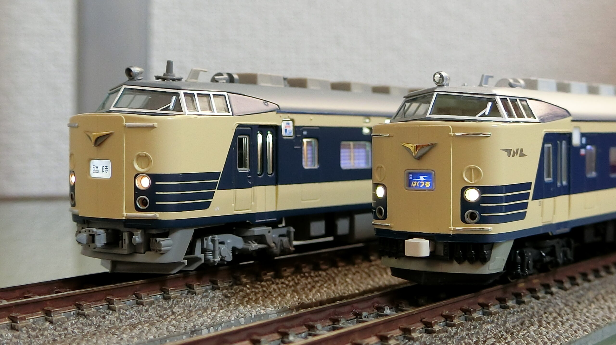 当区の583系はKATO車で揃えました。室内灯は純正クリアを、後からモーターAssyを投入し13連を2M化することができましたので、大体のところは走行できそうです。その他、座席・寝台のモケットとして青いマステで再現しています。あとはエヌ小屋のブラインド貼り付け、ヘッドライトへ色挿しもしてやらないとですね!