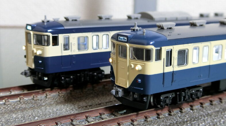 当区には、スカ色の113系と115系がTOMIXので所属しています。113系は通常品、115系はHG規格品ですが塗装に差があるようには見えません。塗り分けの苦手な・・・TOMIXですから、よく見ると滲みなどが気になってしまうのですが、走らせてしまえば分からないであろうと見なかったことにしています。