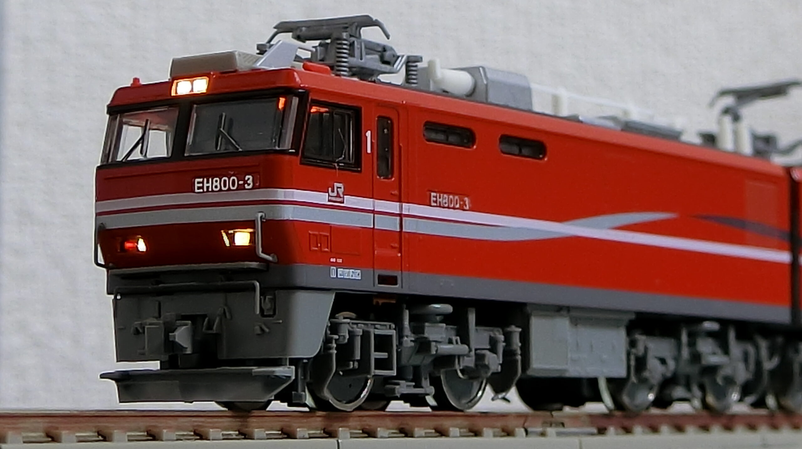 人気車種であるEH500をベースに開発された機関車ですから製品化して当然ですよね。TOMIXのは8軸集電8軸駆動とパワフルで、コンテナ20両なんて軽々牽いていきます。若干暗く感じるヘッドライトさえ手を入れられれば、あとは屋根上の高圧線への色挿しくらいなもんでしょうか。KATOはそのあたり抜かりなく再現していますよね。