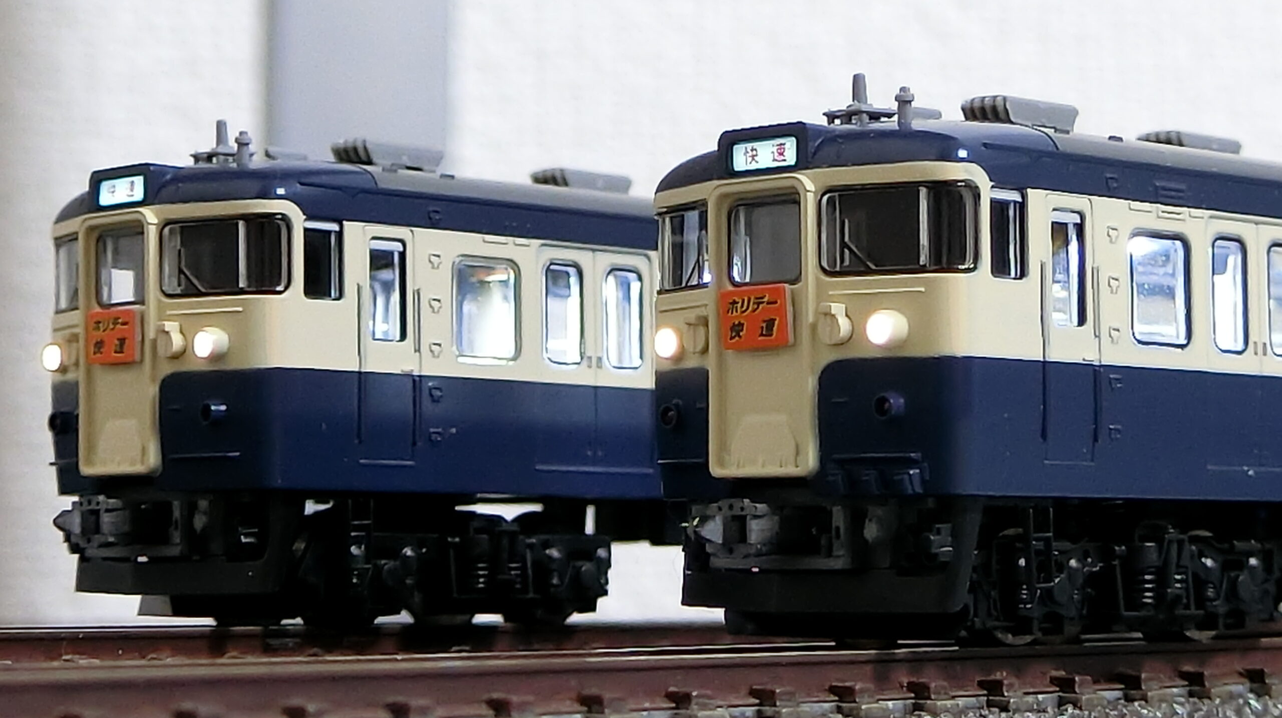 4000形はライトグレーの床下・台車と、HIDを再現した真っ白いヘッドライトに惚れ惚れしました。取説通りにパーツを組み付けたのち、全車TNカプラーに交換、室内灯は散々迷ったあげく自作品を取り付けました。当時まだ自作品の仕様が固まっておらず試行錯誤していた時期で、(カッコよく言えば)プロトタイプ的なものを装着しています。電球色いや、ほとんど黄色に発色するテープLEDを真っ青のマスキングテープで調光してみると、着色ガラスパーツ越しに灯りを見るといい色合いに見えたんですよ。現在の当区標準ではありませんが、またやってみてもいい加工方法かと思っています。