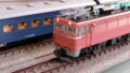 「トワイライトエクスプレス」「日本海」ともに両メーカーが専用編成を製品化していますので、EF81も敦賀仕様が出ています。当区の機関車はTOMIXで揃えることが多いのですが、この44/101号機は「さよなら」セットのバラし品を狙ってネットオークションで入手したものです。「さよなら」セットは、高額アイテムだけに一般品と違ったスペシャルチューンがなされているのは皆さまもご存知のことと思います。ヘッドライトの電球色化(やればできるのに)、「敦」区名札が印刷済みなのが大きいですね。