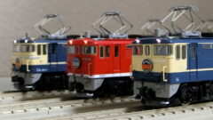 当然ながら模型でも揃えておりまして、1000番代はすべてTOMIXで5機所属しております。重連好きにとっては、F級の中でも大柄なEF64が連なる姿は最高に良くて、通常品*2機、限定品*1セット(2機)、広島機*1機が豊四季区に配備されております。整備内容としては、当区標準仕様のショートタイプのTNカプラーとKATOナックル、ヘッドライトの白色化を行っています。プラ製のパンタグラフは賛否ありますが、私は気に入っていますのでそのままです。丁寧に取り扱いさえすれば分解してしまうことはありません。今後は、連結器周りの配管やら色挿しにチャレンジしてみたいですね。重連でもFWを効かせてスムーズに進み出す瞬間が…タマらなくゾゾっとくるのであります(笑)