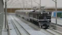 ヘッドライトが明るすぎてハレーションを起こすので、コントローラーのダイヤルは低めで撮影しております。グリーン車の座席パーツが赤なので室内灯が目立ちにくいですが、走行中はKATOらしく赤青がド派手で綺麗です。走行については、平坦な自宅レイアウトなら1Mでも大丈夫ですが、勾配のある貸しレに持ち込むには心許なく動力追加が必要そうです。200番台発売時に動力ユニットAssyが出るでしょうから追加しましょう。