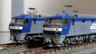このレッドベアことDF200ですが、TOMIXの赤スカート仕様が所属しております。かなりの重量感で実車通り17-18両程度を牽かせる分には何ら問題なく力強さを発揮します。コキタキ50両編成くらいいけそうですよ・・・あくまで自宅の平坦なレイアウトの場合ですが。