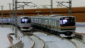 このE233系1000番台には少し思い入れがありまして、この車両がデビューしたとき北区に居りましたので京浜東北線で通勤していました。駅のそばの電留線に209系・209系500番台・E233系1000番台の3車種が並んでいるのを見掛けて鳥肌が立ちました。揃いも揃ったあの光景は忘れません。