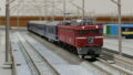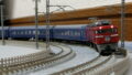 模型的には、取説通りにパーツを取り付けた以外は純正室内灯(白色)を組んだのみです。入線当時は脱線が頻発しましたが、レールや配線の取り回しを見直して、レールの凹凸を改善、なんとか安定走行となりました。動力は古いタイプなようですが、かえって安定してるかも?静かでスムーズです。