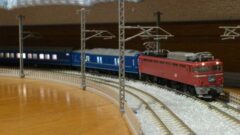 そのEF81ですが「さよなら トワイライトエクスプレス」のバラし品44号機を無理して購入しました。客車はTOMIXの24系西日本編成で、金帯のオロネ25-300の他は銀帯の0、100番台オハネ・オハネフが組まれた美しい編成です。カニ24も運用の都合上トワイライト色が組まれることもあったようで、これは模型的にネタになりますね!