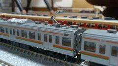 客車に、TOMIX純正室内灯とBMTNカプラーを奢り、エヌ小屋のカーテン・壁面の貼り付け、トイレタンク取り付けと、当区では定番の施工を行っています。もう手放せませんね!
