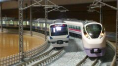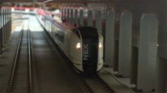 駅を越えた辺りの情景はこれからですが、大きな橋が2ヵ所あるのでこれからが楽しみです。新幹線のトンネル突入やローカル線1-2両が楽しめるレイアウトになるそうです。