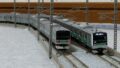 過渡期においては離合はもちろん混成も多く見られ、どこか垢抜けたような雰囲気を楽しめたのではないかと思います。正月なので紅白でおめでたい塗色かと思い離合させてみた次第です(笑)