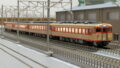 2連のS編成2本と3連のN編成が所属しています。TOMIXから後日2連セットBが製品化されトイレが再現されています。が、残念ながら肝心なトイレタンク設置が省略されているので当方で取り付けています。クモハのDT21台車が大きいのでカーブ通過時にトイレタンクに干渉してしまうため、パーツ内側を大きく削るなどの作業をしています。