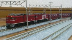 いずれもTOMIX製ですが、TOMIXらしくないFWの効きが強い動力の持ち主です。小さいD級にも関わらず実車同様に交流機らしい粘りけのある?力強い牽きっぷりです。ED75 2両のうち1両は1039号機としました。あの震災時津波に巻き込まれた車両ですね。ナンバー取り付けの際は一通り調べるんですが、1039をつけないといけない衝動に駆られました。