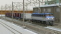 伯備線内を深夜・早朝に走るため冬季は霜取りとしての役割ではないか、と見ました。ちょっと気になったのは、閑散路線なので回生失効する可能性があり抵抗器を載せているってところです。もしお分かりの方がいらしたら是非お教えください。