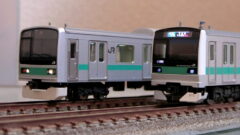 そんなことから模型でも所有しておきたいと思い、何年も前のことですがKATO 485系初期型 雷鳥セットを入手した次第です。先頭車は片側だけボンネット車に、クーラーの形状もAU12(キノコ型)とAU13が混成された編成が好きで、そのような12両編成にしています。ちなみに、ひたちも同じようにしてしまうのですよね…。室内灯はKATO純正と思いますが、座席パーツが照らされて青や赤の毒々しい色が気に入らないので早く座席塗装を施そうかと思います。。。サハは緑色パーツですが実車の座席がどうだったのか調べがついていません。