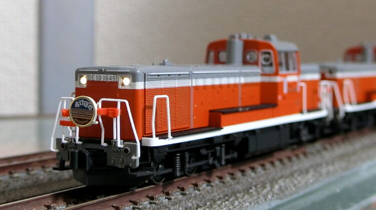 寝台特急あけぼのを重連で牽いた仕様を再現しています。当ブログで何度かご紹介しておりますが、あけぼのは山形新幹線の工事に伴い経路が何度か変更になっています。東北本線から陸羽東線を経由して新庄に向かいますが、この陸羽東線が線形か規格かDD51が入れないのですね。そこでDE10に白羽の矢が当たった訳です…大出世でありますね!