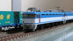 TOMIXの24形12両編成ですが、全長の短いカヤ24なのとプルマン式のオロネ24‐0が特徴的ですね。出世列車と呼ばれた時代には、オロネ24が2両組み込まれたこともあったとか。なお、食堂車は組まれておりません。全車BMTN化、純正室内灯・トイレタンク取り付け、エヌ小屋カーテン施工済みであります。牽引機EF65‐1000前期形もTOMIX製で、かなり古いロットなのでヘッドライトは白色LED化してあります。まだまだ現役ですよ!