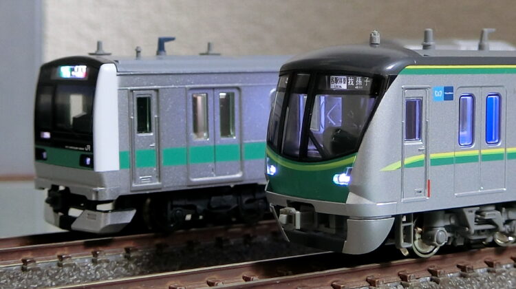 エメグリではないんですよね。エメグリは南北線のように見えます。恐らく、E231系の快速に誤乗車がないようにエメグリ1色ではなく微妙に変えてますね。個人的に、メトロ車の外装内装デザインが好きで、且つ車内アナウンスの森谷さんの声に癒されています(笑)
