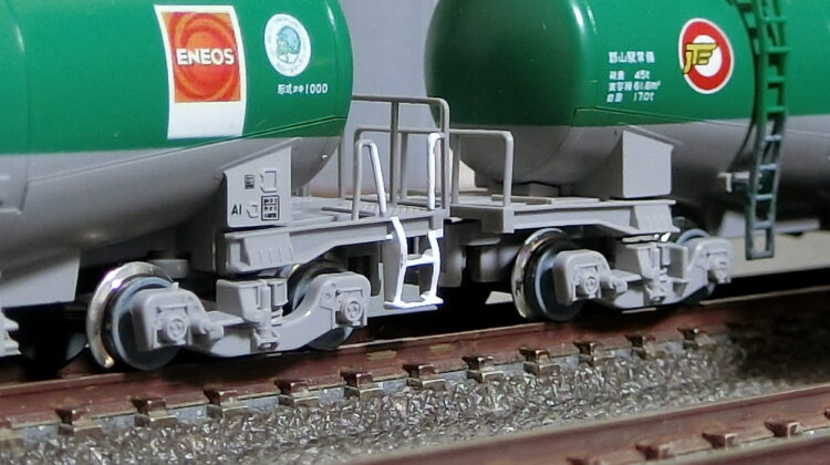 地元でよく見掛けるタンク貨車ですが、牽引する機関車を選ばないのがいいですね。青い直流機でもなんでも合わせやすく、模型としても扱いやすい貨車で運転会時に重宝します。