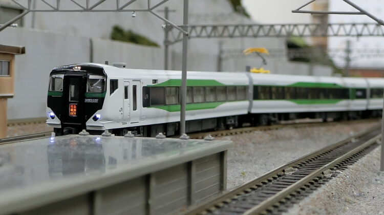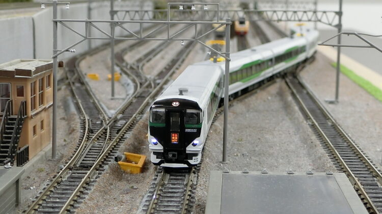 元は房総特急として使用されたE257系500番台です。房総特急やE259系N’EXの運用縮小により、高崎線特急の651系の置き換えと波動用に転用されました。JR東らしくグリーンが窓枠に塗られていますが、よく見ると細いストライプが入っており爽やかな印象を持ちます。グリーンストライプというと185系を連想する世代ですが(笑)、車両としては新しくないが…新しいグリーンストライプ車として活躍が期待できます。