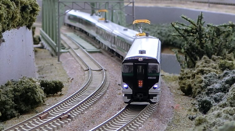 動力は従来の非FW動力ユニットで極めて安定、音も静かです。FW動力の唸るような高音が気になるのは私だけでしょうか…。ヘッドライトはLEDらしく青白く点灯しますが、実車の画像では電球色っぽく見えるものもあり、どれが正しいのは判りません。が、模型のライトの青白さがカッコよく見えるので、取り敢えずはこのままでいようと思います。