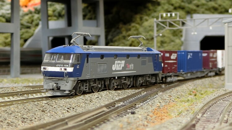 EF210‐100もTOMIXですが、前面のナンバーが窓下の黒い部分ごと取り付けなのがいいですね。旧塗装しかいないのですが…白帯を巻いた新塗装も入手したいところです。いつもですと国鉄型ばかり出したくなるのですが、たまにはJR型もいいもんですね!