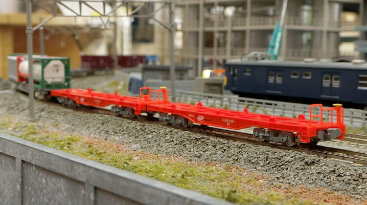 私は割と古い時期の編成(コンテナ搭載)を模しているので、現在はだいぶ違うかもしれませんが、タンクコンテナが数種類入っているだけで見ていて楽しい編成になりますね。