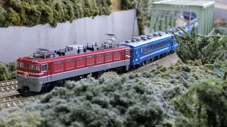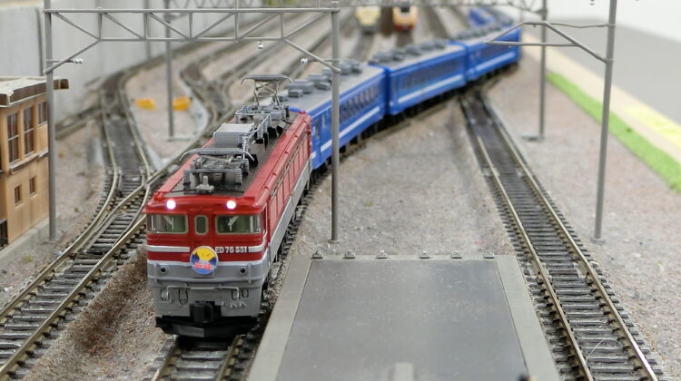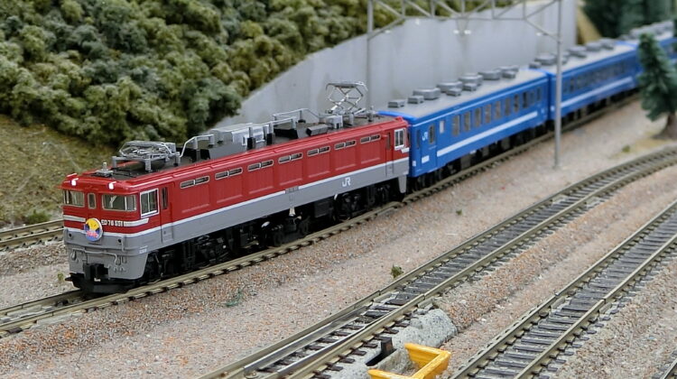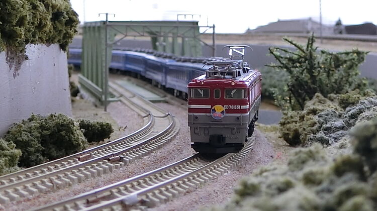 機関車は同じくTOMIXのED76‐551としてみました。ED79‐0でもいいですね!ちなみに、ED76‐551はラウンドハウスの「タイプ」をぴょん鉄で屋根上の加工をしてもらい運用していましたが、TOMIXから「タイプ」でないものが出たので…現在休車扱いです。