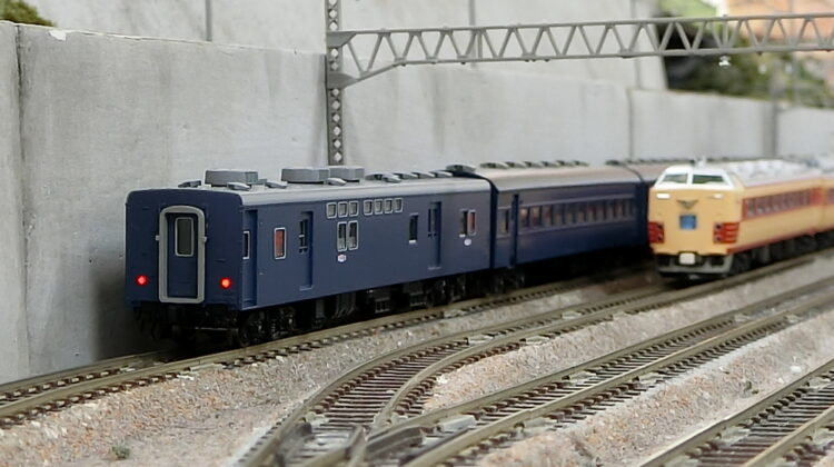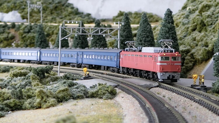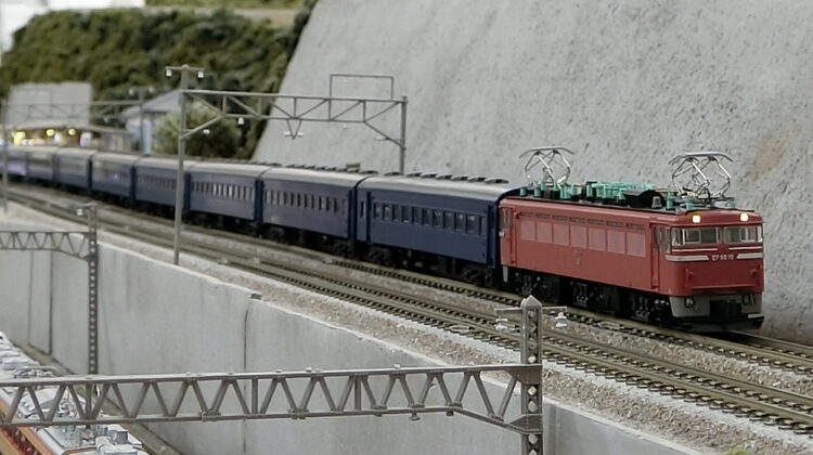 客車はTOMIXで揃えました(KATOから乗り換えた)。やはりTNカプラーによる中間の連結面と最後尾が実感的で…。実車通りの編成とはいきませんが雰囲気は伝わるのでないかと思います。室内灯すら搭載していませんが…座席塗装と合わせて施工したいですね。EF80はKATO機ですので、カプラーは片側だけTNカプラーに換えています。模型的に軽量なKATO EF80では3%勾配を上がることができず…減車するなどして走らせました。その点、模型的に重量級のEF81は平気で駆け上がりました。