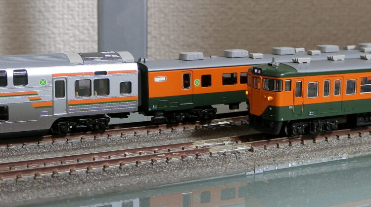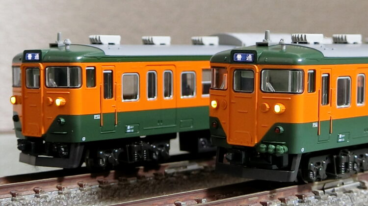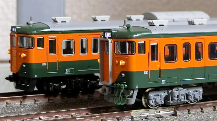基本11両の中にはサロ*2両が連結されますが、平屋のサロ110のほかに特急型のサロ110-350(化けサロ)もありますから楽しめそうです。付属4両はJR東海所属車で床下がグレーに塗られた特徴的な編成です。実際には台車周りは汚れていましたから、ここまで明るいグレーを見られたのは点検から出場したての頃くらいでしょう。私は415系の郡山出場後を見ていたので、近郊型のグレー台車は受け入れられますが…苦手な方もいるかもしれませんね(笑)