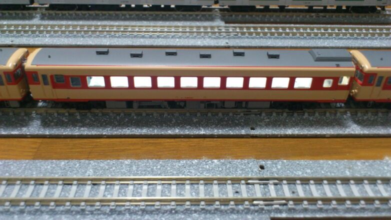 うちのお座敷レイアウトはワイドレールで複線にしてるので、 載せた時の雰囲気が微妙ですが…165系との交換とかで楽しみたいですね!